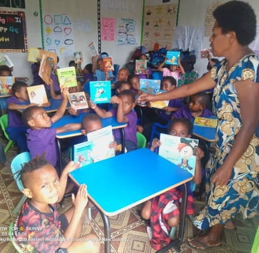 In our recent visit to the Tarachris Phonics Early Learning School located along Bihute road, in Gahuku LLG, Goroka District to deliver a donation of students and teachers resources such as teacher's table, chairs, desks, books all the way from Australia.
